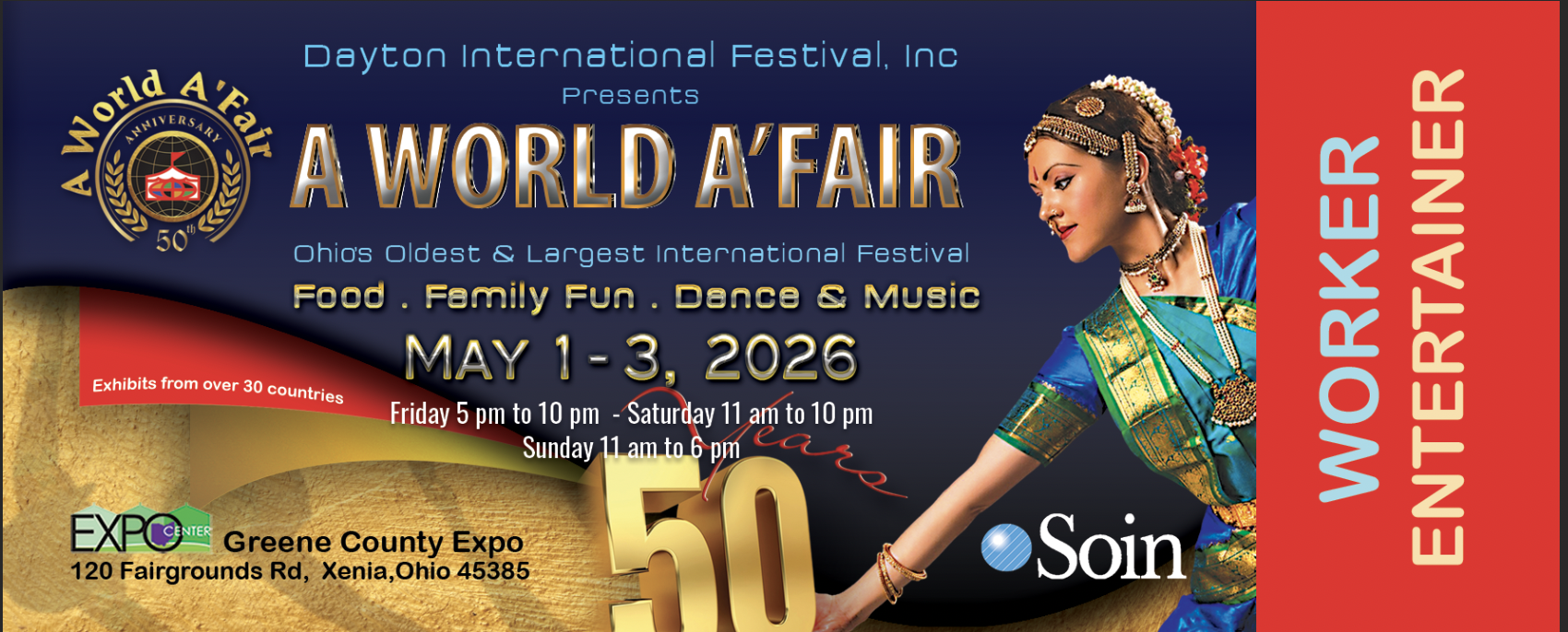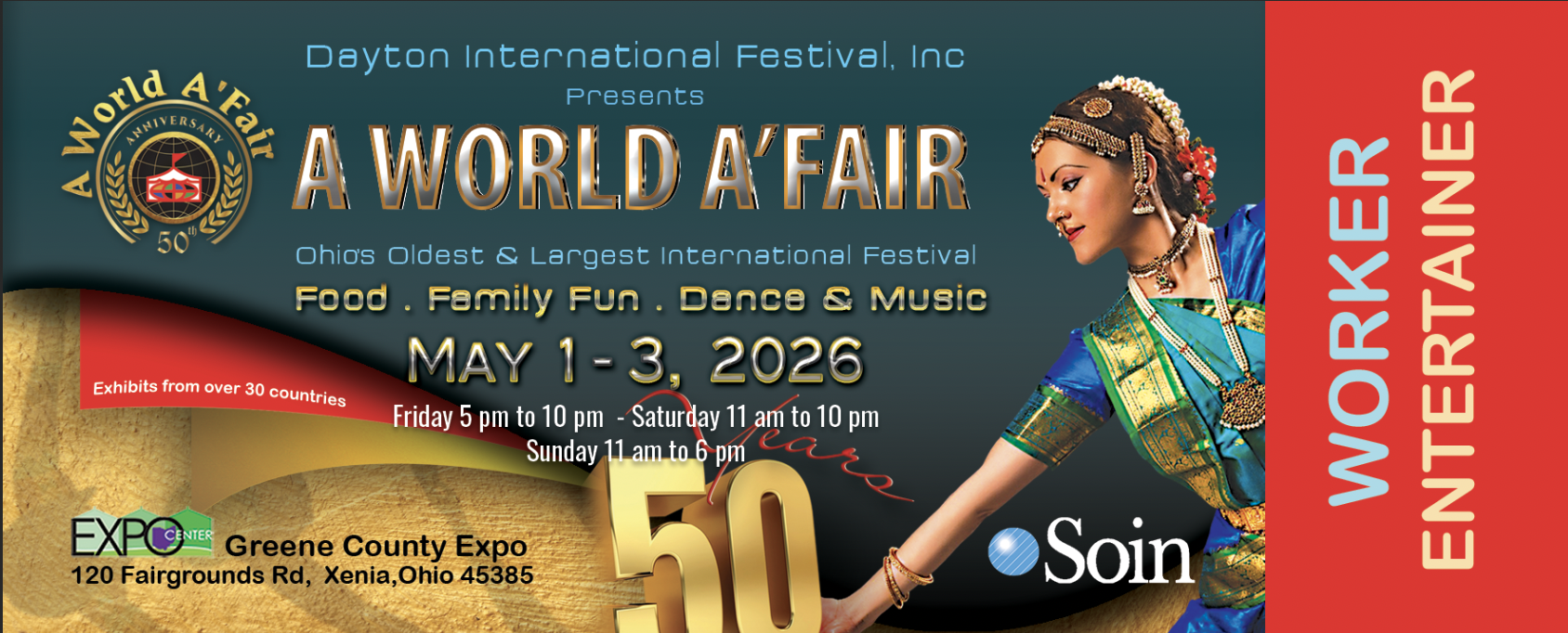 As we produce different marketing materials, we will place them here so everyone can see what designs we’re working on. There is no guarantee that these are the final designs but at least you can get an idea of what to look for. If you are looking to buy tickets to A World A’Fair please go to our “main” website – aworldafair.org and click on “tickets”.